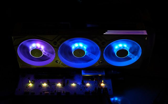 화이트 톤 하우징이 인상적이다. 최근 몇 년간 PC 시장은 블랙 일색에서 벗어나, 케이스와 메인보드, 쿨링 솔루션까지 화이트 에디션을 앞다투어 내놓고 있다. GALAX RTX 5070 EX GAMER WHITE OC 역시 흐름 속에서, 표면을 유광이 아닌 차분한 매트 질감으로 마감해 다른 화이트 부품들과 쉽게 어울리도록 했다. 덕분에 RGB로 과하게 빛을 퍼뜨리지 않아도 시스템 전체가 밝고 정돈된 톤을 유지하게 해 주며, 특히 화이트 인테리어 데스크나 밝은 조도의 작업실, 스트리밍 룸처럼 장비가 화면에 함께 잡히는 환경에서 자연스럽게 녹아든다.