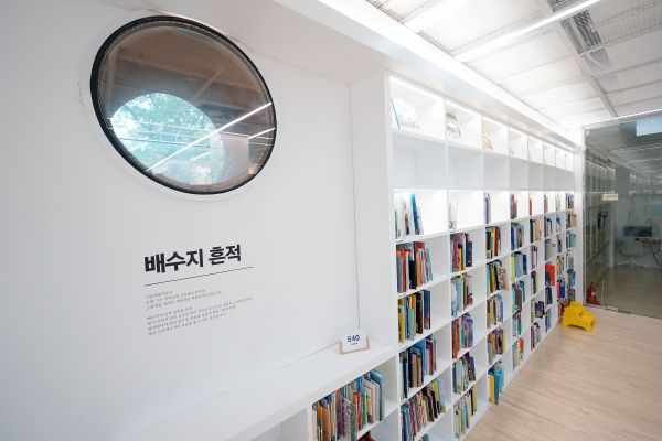 1991년 산본 신도시를 개발하며 시민들에게 물을 공급했던 배수지 터. 30여 년간 비어 있던 이곳이 그림책 도서관이자 문화예술 공간이 된 건 재작년 이맘때의 일이다. 오는 9월 1일 2주년을 맞는 군포 ‘그림책 꿈마루’를 찾았다. 경사로를 따라 올라가니 옥상 정원이 나오고, 카페 위로 둥근 달이, 오른쪽엔 커다란 민들레 홀씨들이 군집을 이루어 피었다.