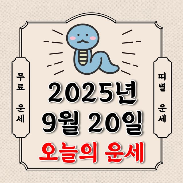오늘의 운세 2025년 9월 20일 토요일 (음력 7월 29일 / 띠별 운세 / 생년월일 운세)에 대해 알아 보겠습니다.