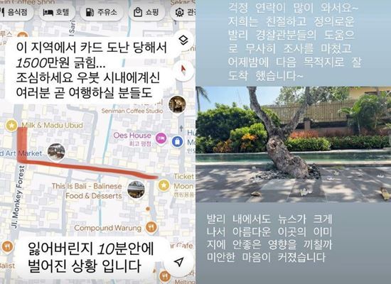 그러나 이후 전혜빈은 발리 경찰에 신고를 했으며, 다시 여행을 즐기고 있다고. 그러면서도 발리 이미지에 좋지 않은 영향을 미칠까 걱정된다며 미안한 마음도 꺼내놓았다.