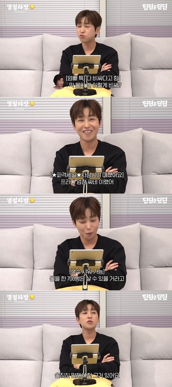 이날 딘딘은 “이번 명절에 엄마, 아빠와 셋이서 효도여행을 가려고 했다. 근데 오사카 비행기 티켓 비즈니스가 160만 원이더라. 재수가 없더라”라며 “엄마, 아빠 모시고 여행을 가는데 두 분 연세가 많아서 무리해서라도 하려고 했는데 싫다고 하시더라. 나중에 가자고 했다”고 말했다.