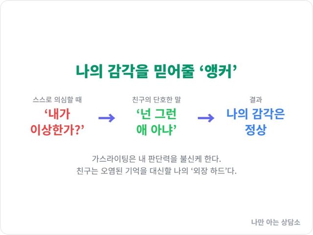 이 한마디는, 천군만마보다 강력합니다. 그녀는 당신의 흔들리는 직관을 붙잡아주고, 당신이 틀리지 않았음을, 당신의 감각이 정상적으로 작동하고 있었음을 대신 증명해 줍니다.