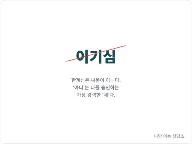 당신이 ‘아니’라고 말할 때, 당신은 상대방을 거부하는 것이 아닙니다. 당신은, 당신 자신을 승인하는 것입니다. 당신이 ‘여기까지’라고 선을 그을 때, 당신은 상대방을 밀어내는 것이 아닙니다. 당신은, 당신의 내면을 보호하는 것입니다.