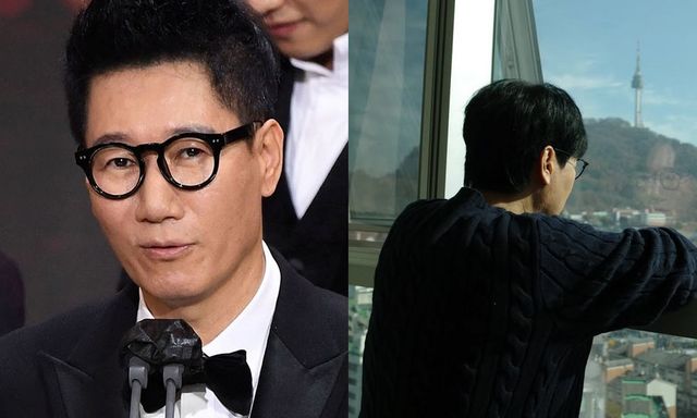 사진 속 그는 창밖을 바라보며 조용히 생각에 잠긴 듯한 뒷모습을 보이고 있다. 창 너머로는 남산타워가 희미하게 보여 잔잔한 분위기를 더한다.