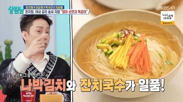 이날 은지원은 아내를 향한 남다른 애정을 드러냈다. ‘아내가 시어머니와 똑같은 요리 맛을 내냐’는 질문에 은지원은 “맞다. 나박김치와 잔치국수가 정말 맛있다”며 사랑꾼 면모를 보였다.