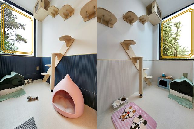 객실은 6성급 호텔 기준에 따라 다양하게 마련되어 있으며, 모든 반려동물에게 개별 화장실, 식기, 장난감 등의 기본 용품이 제공된다. 1견묘 1실 원칙을 따르며, 한 가정의 반려동물은 요청 시 함께 투숙할 수 있다.