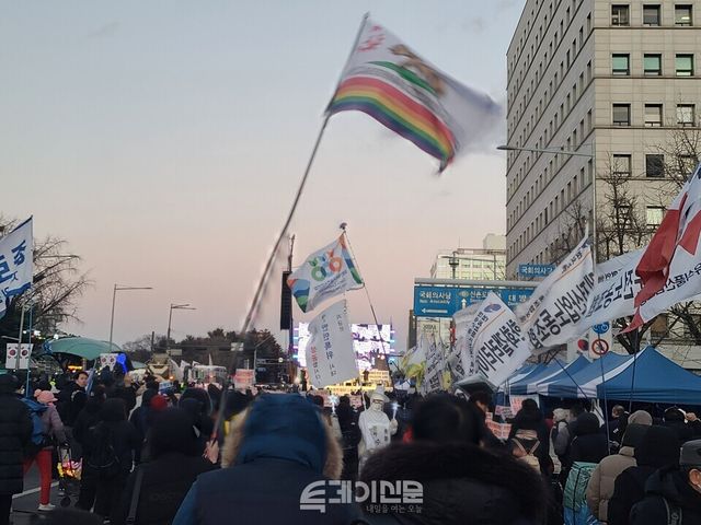 계엄군의 탱크가 지나가던 국회의사당 삼거리는 이제 저마다의 목소리를 내는 시민들로 가득 찼다. 전국장애인차별철폐연대부터 태극기 부대, 시민대행진까지 다양한 행렬이 한데 모여 거리를 메웠다.