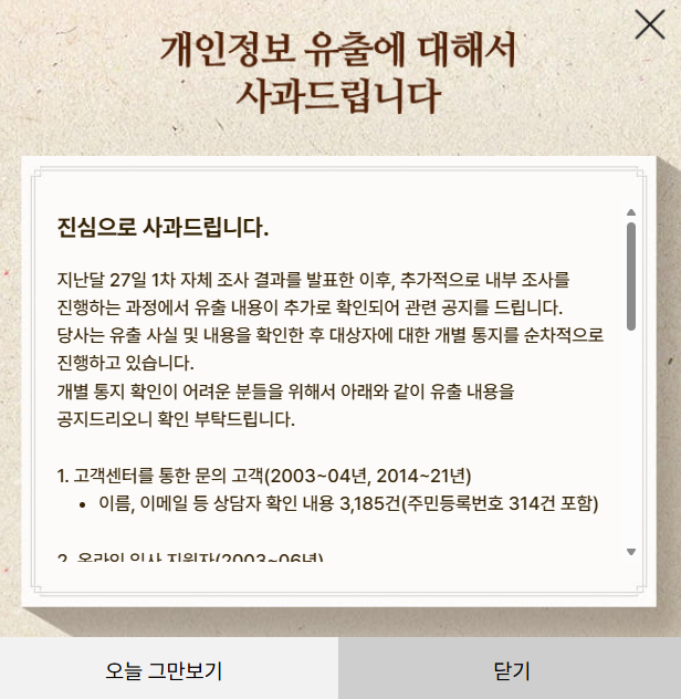 넷마블은 3일 공식 홈페이지를 통해 "내부 조사를 진행하는 과정에서 유출 내용이 추가로 확인됐다"고 공지했다.