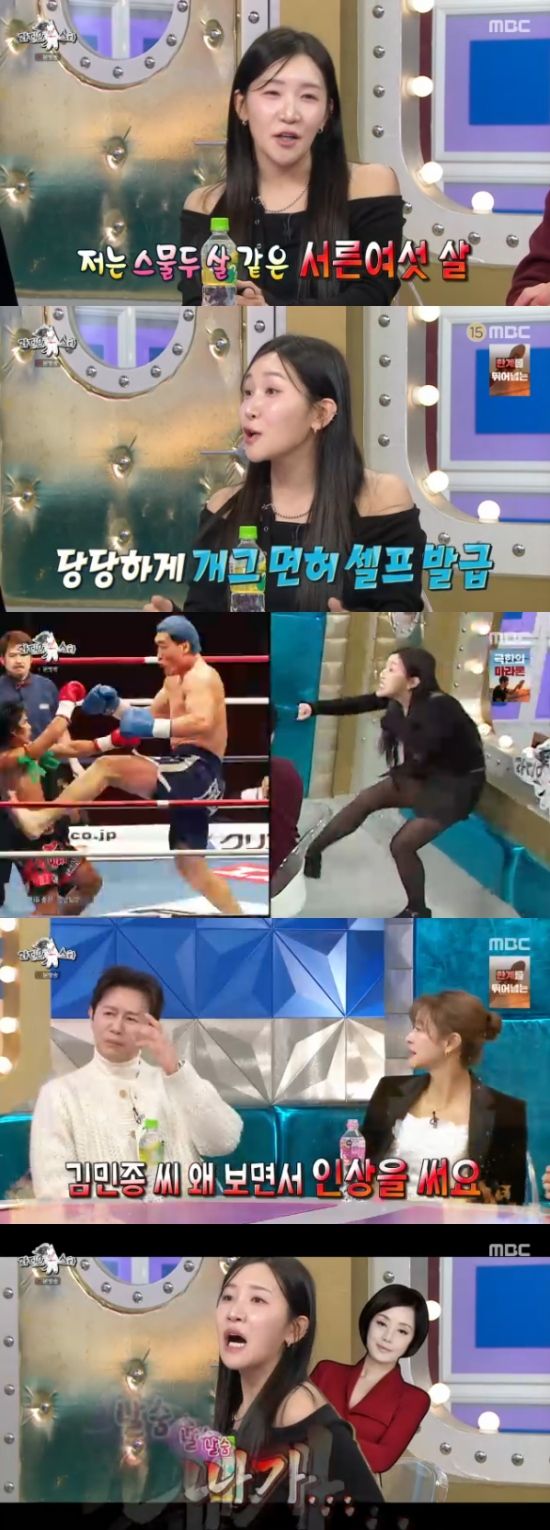 (엑스포츠뉴스 오수정 기자) '라디오스타'에서 이날 김지유가 개그맨 공채 시험에서 보여줬던 개인기를 선보였다.