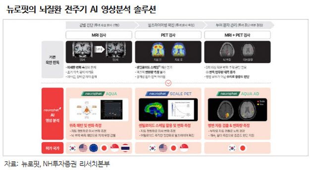 한 연구원은 “MRI 기반 아리드(ARIA) 부작용 분석기술을 보유한 글로벌 주요 기업은 뉴로핏, 이코메트릭스(icometrix), 코넥스AI(Cortechs.ai) 세 곳”이라며 “올해 9월 GE 헬스케어는 경쟁사 이코메트릭스를 인수했고, 이를 통해 2024년 인수한 MIM 소프트웨어(PET 아밀로이드 플라크 정량)와 함께 알츠하이머 진단, 모니터링, 치료 전 과정 솔루션 제공을 목표로 하는 것으로 추정된다”고 설명했다.