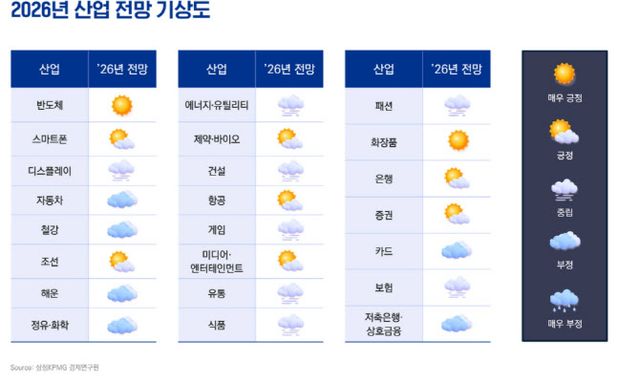 삼정KPMG 경제연구원은 “2026년 국내 산업은 글로벌 지정학 리스크, 기술 혁신, 정책 변화가 교차하며 복합적인 전환기를 맞이하고 있다”며 “기업은 불확실성 대응을 넘어 새로운 성장 엔진을 재점화해야 할 시기”라고 강조했다.