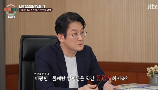 전문의는 “부부가 뭔가 바뀔 거라고 보진 않는다. 오늘 상담을 길게 끌고 가려는 이유는 둘째 때문이다. 둘째랑 남편분을 동일시 여기시죠?”라고 물었다. 이에 아내가 동조하자 전문의는 “남편에 대한 화를 둘째한테 투영하는 것 같다”라고 지적했다. 아내가 부인하자 전문의는 “그런데 남편은 닮았고, ADHD 영향이 남편한테 왔다는 거죠?”라고 말했다. 이에 아내는 “남편과 둘째를 동일 시 한다는 건 몰아가는 것”이라며 부인했다.