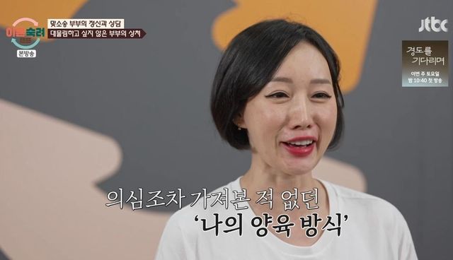 아내는 “저도 그렇게 컸기 때문에 배운 게 그거다”라며 “제 양육방식이 잘못됐다고 생각해본 적이 없다. 시대가 바뀌었다면 저도 바뀌어야하지 않을까”라고 반성했다.