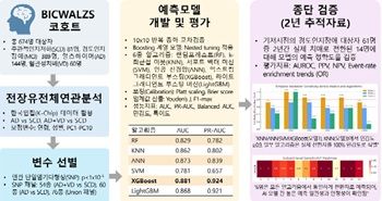 질병관리청 국립보건연구원은 한국인 치매 코호트인 ‘만성뇌혈관질환 바이오뱅크 컨소시엄’ 674명의 임상 및 유전체 정보를 활용해 6종의 인공지능 알고리즘을 비교·분석해 한국인 맞춤형 치매 예측 모델을 개발했다. 연구 결과는 2025년 11월 온라인으로 게재됐다.