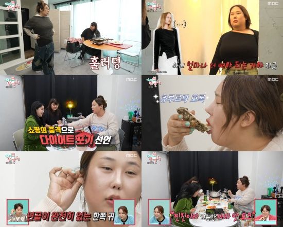 이에 대영과 함께 나간 쇼핑에 출산 후 20kg 벌크업한 유튜버 랄랄도 합류했다. 상의 사이즈가 140에서 105로 대폭 변화한 풍자였지만, 막상 기성복 매장에선 ‘사이즈 전쟁’이 발발했다. 풍자가 입으면 신축성 좋은 슬리브 티도 살이 비치는 시스루가 됐고, 원피스는 상의가, 상의는 크롭티가 되는 웃픈 상황이 연출된 것. 랄랄 역시 작은 옷에 애를 먹었고, 대영은 다행히 핏한 무스탕을 찾았지만 ‘야인시대’ 느낌을 지울 수 없었다. 결국 풍자는 시착 과정에서 상해(?)를 입힌 옷들을 모두 구매, “집에 두고 살 빼서 입어야겠다”는 역발상 다이어트 동기부여를 선언했다.