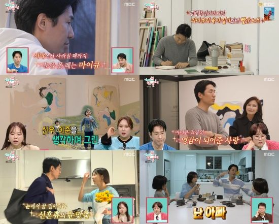결혼 후 자연스럽게 “아빠”가 된 순간의 벅차올랐던 감정은 아직도 설명하기 어렵다는 그였지만, 아이들에겐 이미 조곤조곤 다정한 ‘미술계의 션이자 최수종’이었다. “Follow your heart, 너흰 세상의 빛”이라는 아침 구호로 아이들을 배웅한 마이큐는 창밖으로 두 아이의 뒷모습이 완전히 사라질 때까지 행복 가득한 눈빛으로 창문 앞을 떠나지 않았다.