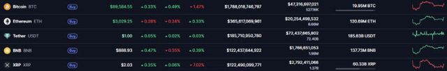 글로벌 가상자산 시황중계 사이트 코인마켓캡에 따르면 8일 오전 8시 10분 기준 비트코인 가격은 24시간 전 대비 0.49% 상승한 8만 9584달러를 기록했다. 일주일 전과 비교하면 1.47% 하락했다. 이더리움은 전일 대비 0.24% 내린 3029달러에 거래됐다.