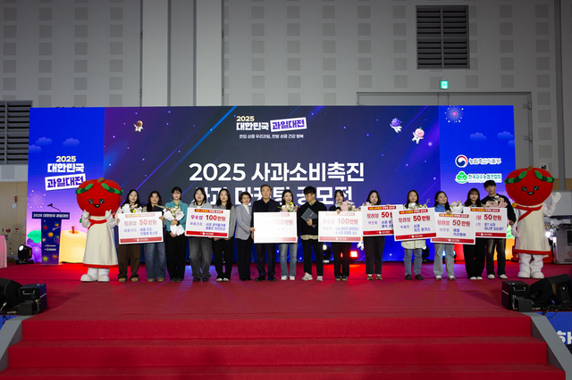 한국사과연합회(회장 서병진)가 우리나라 대표 과일인 사과의 국내 소비 활성화를 위해 다양한 소비층의 관심을 유도하고 실질적인 상품화 가능성을 높이고자 2025 대한민국과일산업대전 행사장 주무대에서 지난달 27일 “2025 사과 소비촉진 마케팅 공모전”을 진행했다고 8일 밝혔다.