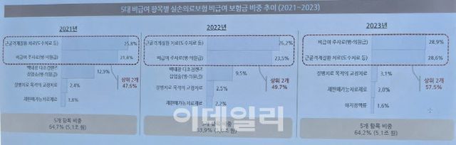 관리급여로 결정된 3개 의료 행위는 비급여 의료비와 실손보험 지급액 급증의 주요 원인이다. 실손보험 급여액은 금융감독원에서 항목 별로 분류하지 않아 정확한 규모가 측정되지 않는다. 금감원에 따르면 지난해 실손보험에서 도수 치료와 체외충격파 치료 등 근골격계 질환 치료에 지급된 금액만 2조 6000억원이다. 방사선 온열치료와 경피적 경막외강 신경성형술 또한 실손보험 지급액이 연간 수천억원 수준인 것으로 알려졌다.