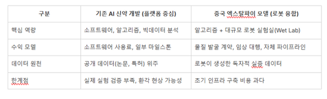 최근 업계에서는 “AI 소프트웨어만 파는 회사가 아니라, 로봇이 실제 물질을 합성하고 전임상까지 대행하는 ‘패키지’를 내놓는 중국식 모델이 빅파마에 먹히기 시작했다”는 분석이 나온다.