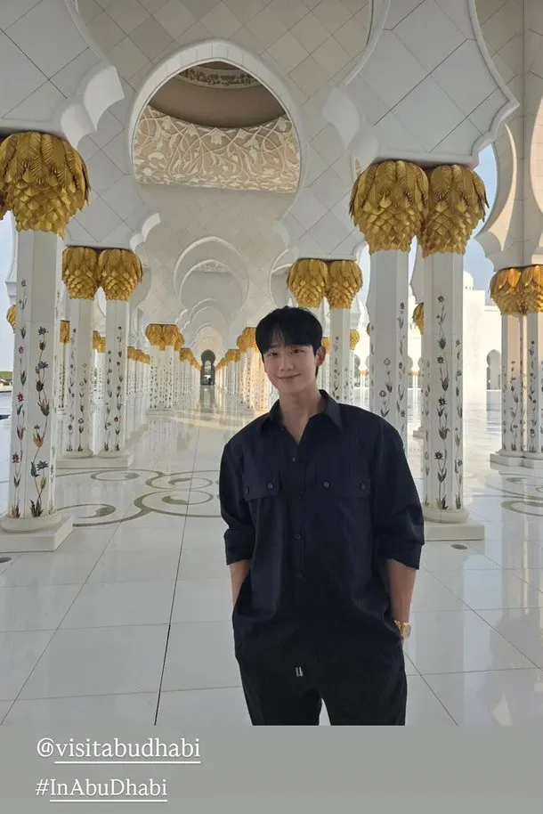 한편 배우 정해인은 지난 7일 아랍에미리트 아부다비를 찾아 중동 팬들과 만나는 시간을 가졌습니다. 정해인은 자신의 소셜미디어를 통해 아부다비 그랜드 모스크를 배경으로 한 근황 사진들을 공개했습니다. 검은색 셔츠와 팬츠, 신발까지 올블랙으로 완성한 시크한 패션에 화려한 골드 소재의 럭셔리 워치를 매치해 세련된 매력을 발산했습니다.