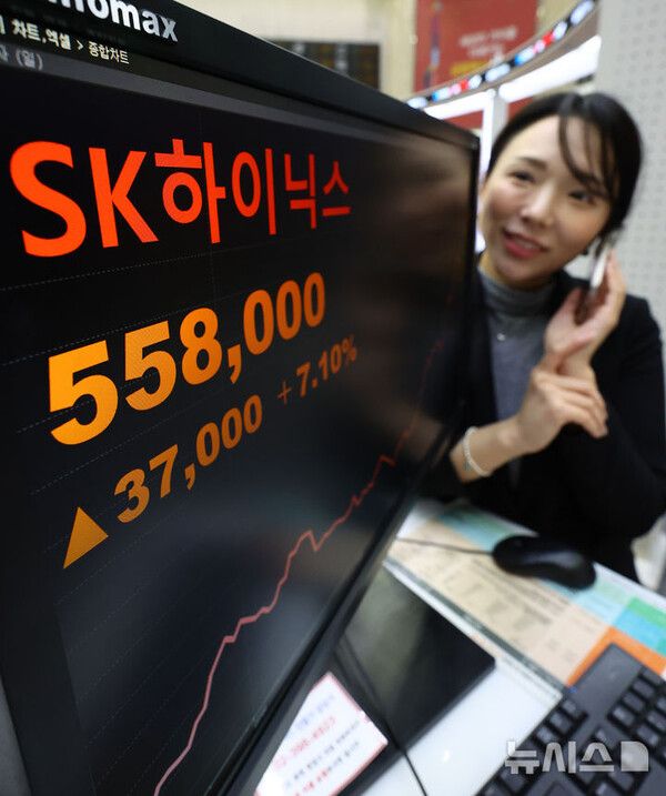 뉴시스 보도에 따르면, 12일 한국거래소에 따르면 전날 SK하이닉스는 2만2000원(3.75%) 하락한 56만5000원에 장을 마감했다. SK스퀘어도 1만6500원(-5.09%) 내린 30만7500원을 기록했다.