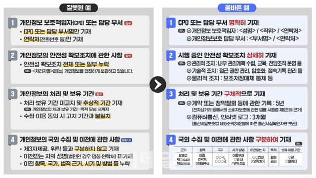 개인정보위는 해당 항목들을 추상적으로 기재하거나 누락하지 않도록 주의가 필요하다고 당부했다.