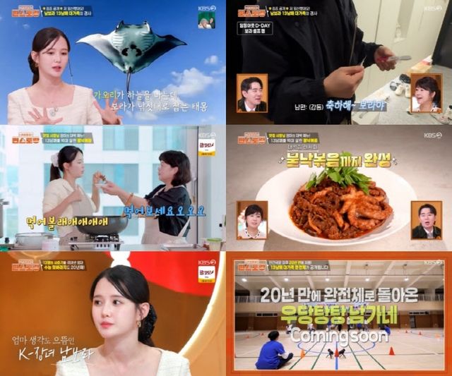 이날 남보라는 엄마와 함께 가족 체육대회를 위해 대용량 요리에 도전했다. 남보라 엄마는 13남매를 키워낸 노하우가 담긴 활용도 최강 ‘우물 육수&우물 양념장’ 레시피를 공개했다. 각 메뉴당 10인분 이상씩 대용량으로 만드는 남보라 모녀의 요리 실력에 ‘편스토랑’ 식구들은 감탄을 쏟아냈다.