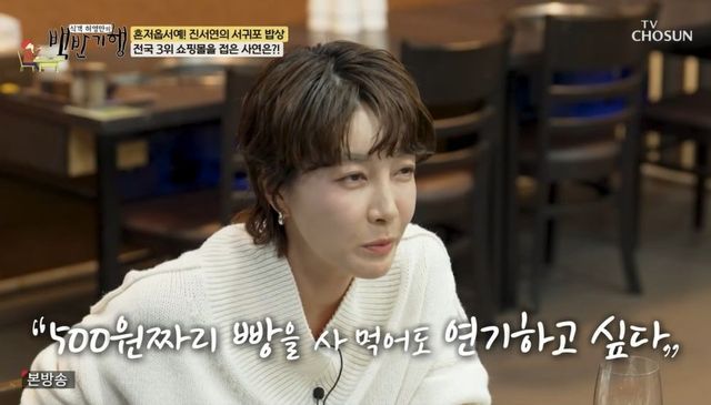 이어 진서연은 “(연기로) 회당 50만 원 받았다. 그러면 수입이 몇 배가 줄어든 거냐. 그런데도 촬영장에 있는 게 너무 좋고 재미있더라”며 “연기 왜 하냐고 물어보면 전 재미있어서 하는 거다”라고 연기를 향한 열정을 드러냈다.