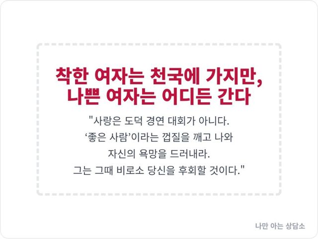 The post 왜 그는 나를 ‘좋은 여자’ 로 기억할까 appeared first on 나만 아는 상담소.
