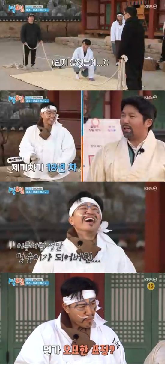 문세윤의 머슴 유선호는 줄넘기 넘으면서 양말 한 짝 벗기 미션을 승리하며 앞서나가기 시작했다.