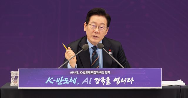 이재명 대통령이 10일 서울 용산 대통령실 청사에서 열린 AI 시대의 K-반도체 비전과 육성전략 보고회에서 발언하고 있다. / 뉴스1