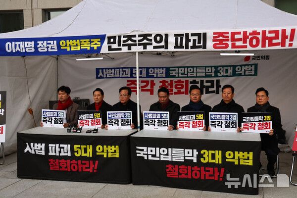 뉴시스 보도에 따르면, 국민의힘 의원들은 이날 오전 8시부터 천막농성에 다시 돌입한다. 농성은 4인 1조로 구성돼 2시간씩 교대하는 방식으로 진행되며, 총 5개 조가 오전 8시부터 오후 6시까지 순차적으로 참여한다. 첫 조는 박덕흠·박상웅·박성민·박성훈 의원이다.
