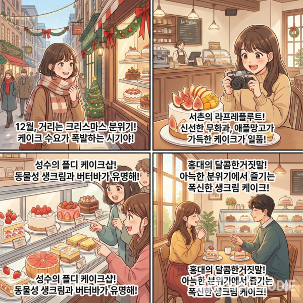 12월이 되면, 거리마다 전구가 켜지며 분위기가 바뀐다. 빨간 리본과 초록 장식이 걸린 상점이 늘고, 빵집 앞 진열장은 크리스마스 한정 케이크로 채워진다. 연말 모임이 겹치면서 케이크 수요는 자연스레 상승한다.