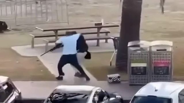 온라인에 퍼진 영상에는 큰 나무 아래에 서서 장총을 든 채 사격하는 총격범을 차량 뒤에 숨어 지켜보던 한 남성이 뛰어가 덮치는 장면이 담겼다.