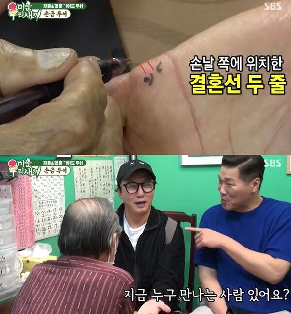 손금쟁이는 탁재훈의 손금을 살펴보며 "한 번 결혼을 했고, 앞으로 한 번의 찬스가 더 있다"고 말했다.