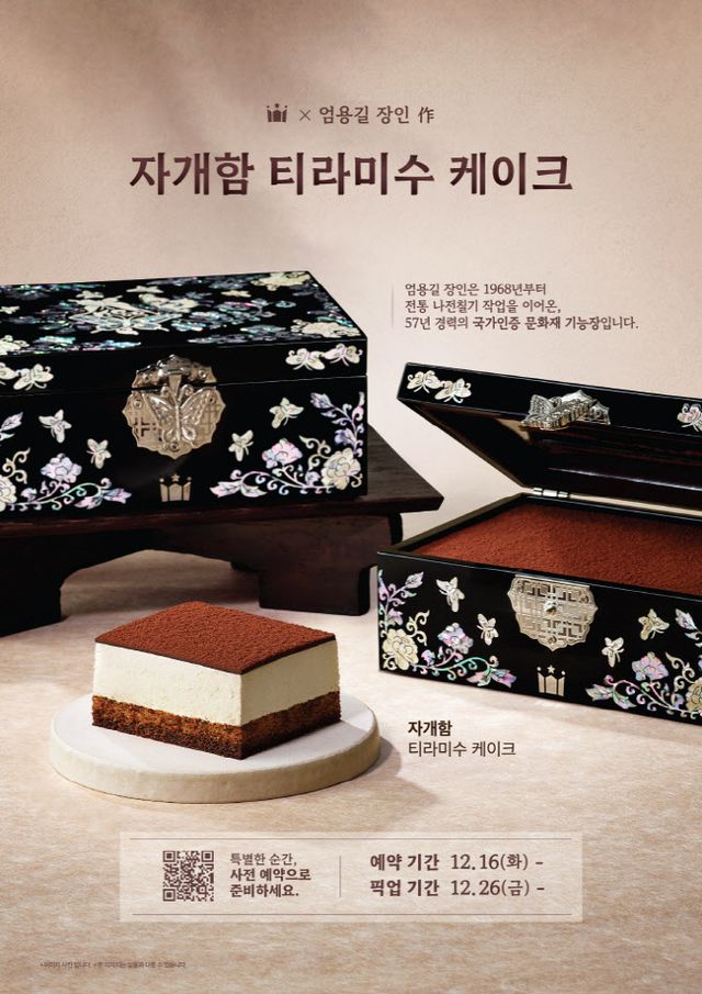 할리스 관계자는 “다가오는 신년, 액운을 깨고 좋은 일만 가득하라는 의미를 담아 전통 나전칠기 장인과 협업한 ‘자개함 티라미수 케이크’를 기획했다”며 “MZ세대에게 재평가 받고 있는 전통과 어우러진 할리스의 신년 한정 케이크와 함께 연말연시를 의미있고 따뜻하게 보내시길 바란다”고 전했다.