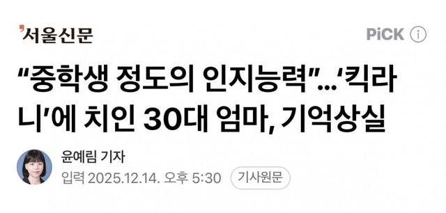 또 “평생 후유 장애를 겪을지는 시간이 지나야 알 수 있다고 한다”며 “아이를 키우기 어렵고, 오히려 보살핌을 받아야 할 정도다. 중학생 정도의 인지 능력을 보이고 있다”고 전했다.