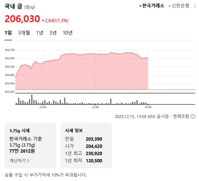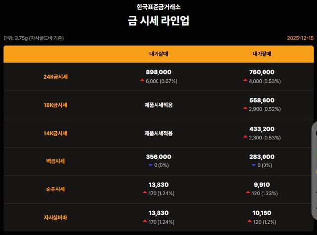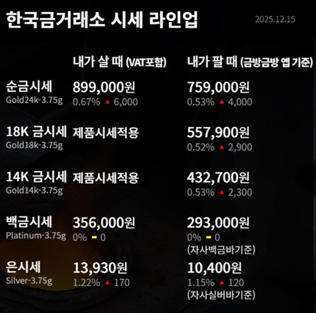 여기에 중앙은행의 대규모 금 매입과 금 ETF(상장지수펀드)로의 자금 유입 증가도 상승세를 뒷받침하고 있다. 세계 중앙은행들이 달러 의존도를 줄이고 외환 보유 포트폴리오를 다변화하려는 움직임이 이어지면서, 올해 금 매입량은 1979년 이후 최대치를 기록했다. 금은 2025년 들어서만 60% 이상 상승해 연간 기준으로도 40년 만의 가장 강력한 상승 흐름을 보이고 있다. 이 같은 국제 동향은 한국 금 시장에도 즉각 반영됐다.