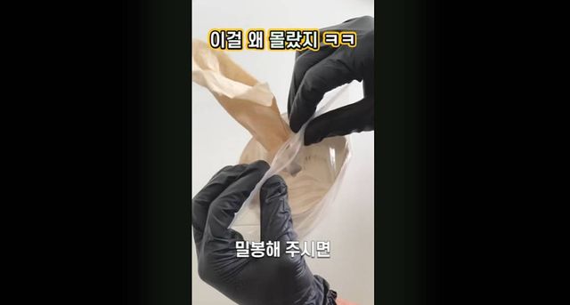 이어 휴지를 뽑아 쓸 수 있도록 지퍼백 상단에 조그마한 구멍을 내고, 그 구멍으로 휴지를 뽑은 상태에서 지퍼백을 밀봉하면 야외에서 쓰기 좋은 ‘초간편 휴지 케이스’가 완성된다고 설명했다. 비나 습기, 먼지로부터 휴지를 어느 정도 보호할 수 있고, 가볍게 휴대할 수 있다는 게 장점으로 꼽힌다.