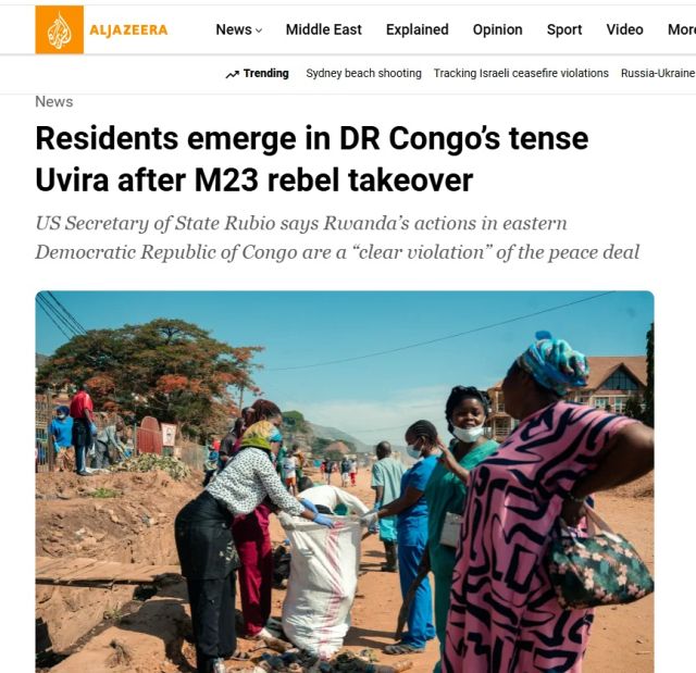 올해 12월 4일에 미국의 중재로 DRC 대통령과 르완다의 대통령이 워싱턴에서 만나 평화협정(Washington Accords)을 체결하였지만, 전쟁은 오히려 더 격화되고 있다. M23은 이번 12월 9일에 부룬디와 접해있는 국경 마을인 우비라(Uvira)를 점령했고, 불과 일주일 사이에 20만 명이 피난길에 올랐다. 부룬디 경제수도 부줌부라와 불과 20km 떨어진 곳까지 전투가 벌어지면서, 부룬디 국민은 전쟁이 자국으로 번질까 두려움에 떨고 있다.