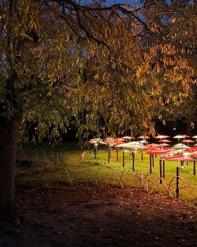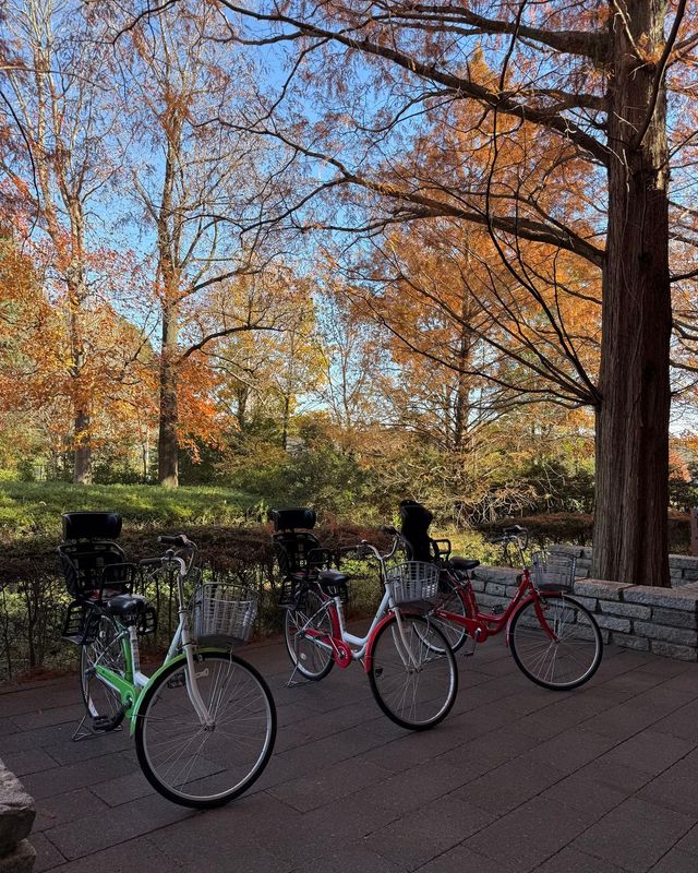 자전거 전용 도로를 따라 페달을 밟다 연못가에서 커피 한잔을 즐기고, 다시 시원한 바람을 가르며 달리는 여유도 이곳의 매력입니다. 특히 가을에는 끝없이 펼쳐진 은행나무 터널이 공원을 황금빛으로 물들이고, 저녁에는 가을 단풍과 함께 정원이 화려한 조명으로 밝혀지는 야간 라이트업 이벤트도 열립니다. 일본식 정원과 분재에 관심이 있다면 더욱 추천하고 싶은 공원이에요.