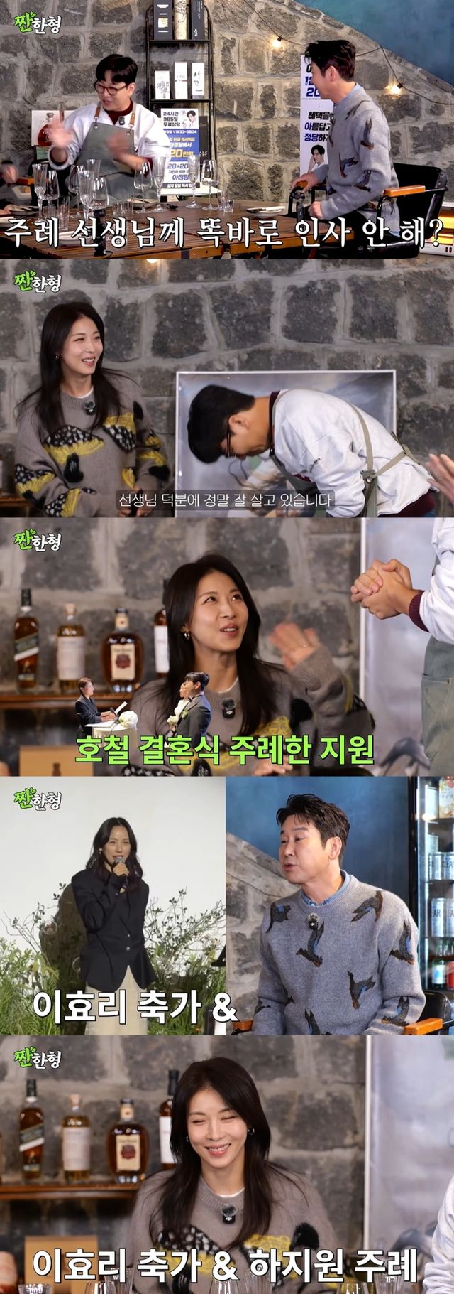 이날 하지원이 등장하자 신동엽은 정호철에 “어헛! 주례 선생님께 제대로 인사 안할까!”라며 호통쳤다. 이에 정호철은 “덕분에 잘 살고 있습니다”라며 90도로 인사했다.