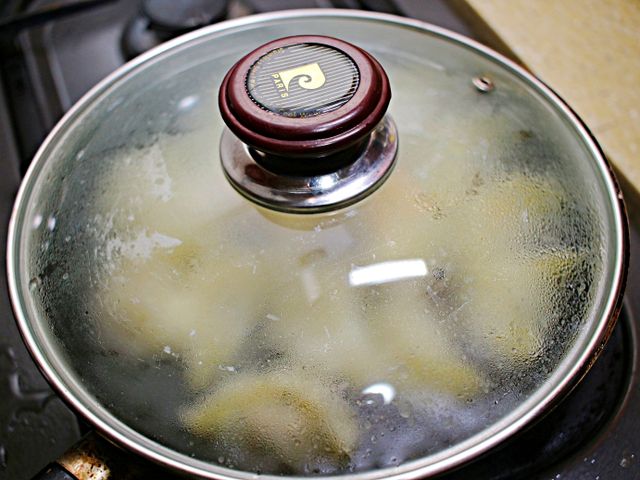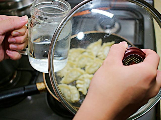 만두 바닥만 살짝 잠길랑 말랑하게 물을 부어주세요.