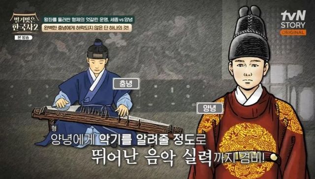 16일 방송된 tvN STORY ‘벌거벗은 한국사2’ 15회에서는 조선의 4대 왕위를 놓고 뒤바뀐 운명을 맞이한 태종의 셋째 아들 세종대왕과 적장자로 14년간 왕세자의 자리를 지킨 양녕대군의 이야기가 펼쳐졌다.