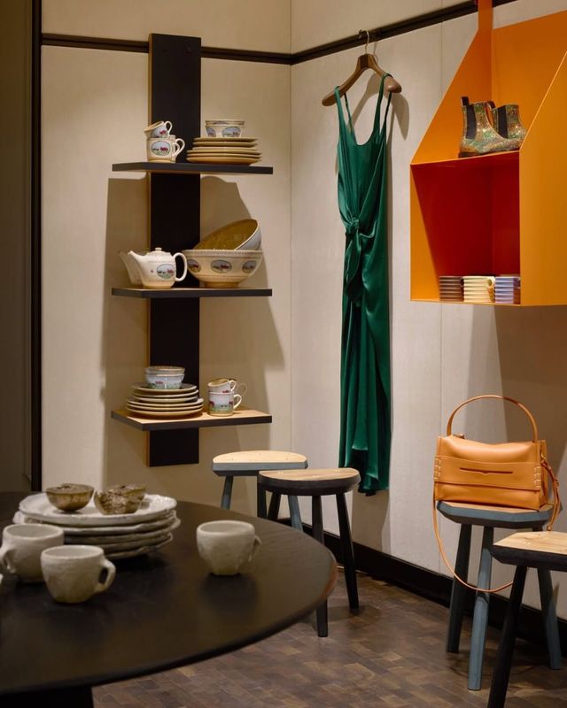 조나단 앤더슨의 취향은 홈 오브제에서 가장 선명하게 드러난다. 그는 패션 디자이너이기도 하지만 동시에 ‘살아가는 방식'을 제안하는 사람이다. 테이블웨어 섹션에 놓인 니콜라스 모스의 샴록머그는 어린 시절 추억을 불러일으키는 돼지 문양 아카이브와 함께 아일랜드 공예의 소박함을 그대로 담았다. 멜린 트레그윈트의 블랭킷은 웨일스 직물의 전통을 이어받아 포근함을 넘어 텍스처 자체가 예술이 되고, 무라노 유리 피처는 빛이 스며들 때마다 공간을 달라 보이게 만든다.