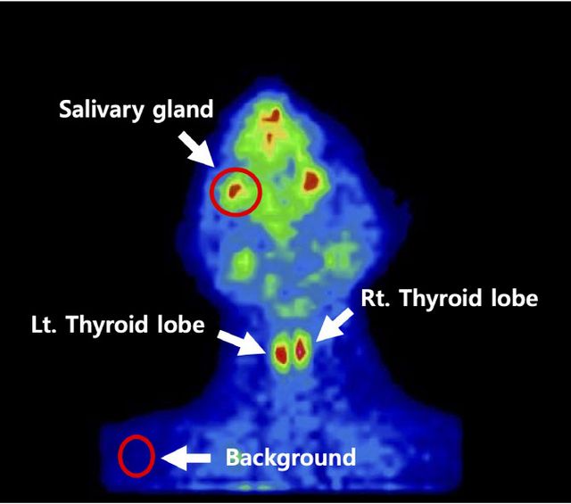SPECT는 방사성의약품이 몸속에서 모이는 양상과 속도를 3차원 영상으로 보여주는 장치로, 장기의 기능을 평가할 때 사용된다. SPECT 영상에서는 방사성의약품이 많이 흡수된 부위일수록 밝게 나타난다. 영상에 나타난 밝기의 정도와 분포 양상을 분석하면 갑상선 기능 항진·저하, 이상 부위 위치, 전이 여부를 정밀하게 판별할 수 있다.