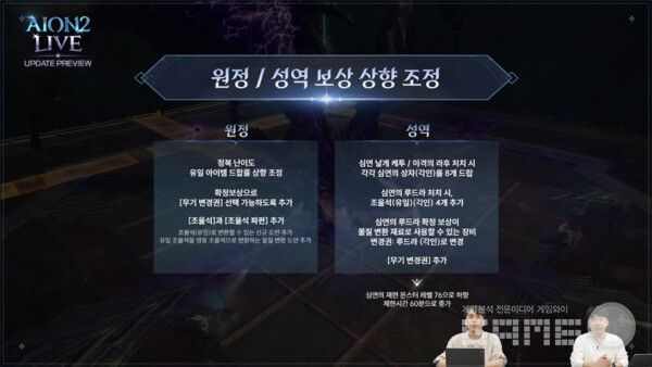 엔씨소프트가 ‘아이온2’ 서비스 방향에 변화를 예고했다. 16일 진행된 유튜브 라이브 ‘업데이트 프리뷰’ 방송에서 엔씨소프트는 매크로 대응 강화, 보상 구조 개편, 클래스 케어 확대, PvP 부담 완화 등 다방면의 개선안을 공개하며, 기존 운영 기조에서 한 발 더 나아간 조정 의지를 분명히 했다.