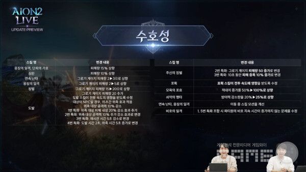 검성, 수호성, 호법성, 궁성, 마도성, 치유성을 중심으로 피해량, 효과, 생존력 관련 조정이 이뤄진다. 반면 살성과 정령성은 이번 업데이트에서 변경 사항이 없다. 개발진은 특정 클래스만을 단기적으로 조정하기보다, 지속적인 모니터링을 통해 순차적인 케어를 이어가겠다고 밝혔다.
