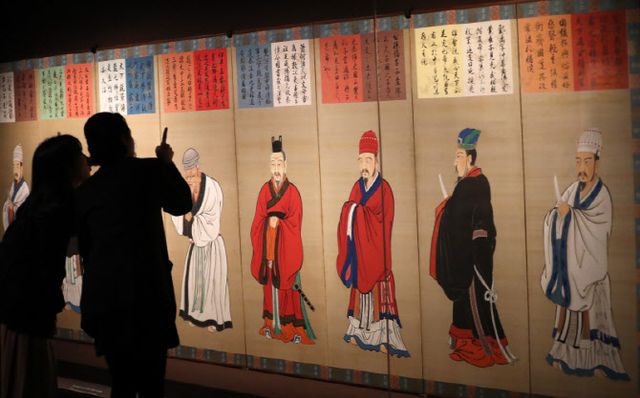 전시는 도쿄국립박물관이 소장한 39점 유물을 소개한다. ‘궁정 정전을 장식한 장지문의 그림을 그린 병풍’은 일본 궁정의 정전(正殿)인 시신덴(紫宸殿)의 어좌 뒤편에 설치됐던 것이다. 중국 성현 32명을 주제로 당시 당나라의 영향을 받은 특성이 나타난다.